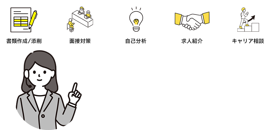 すべてのサービスは無料でご利用いただけます。企業様より費用を頂く事業となっているため、求職者様から全て無料です。