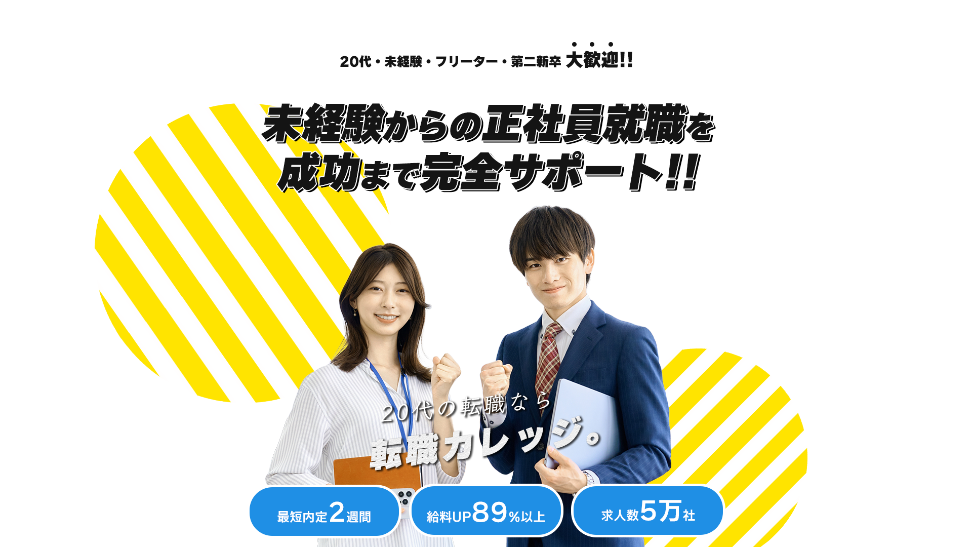 20代の未経験向け就職・転職支援サービスマンツーマンで土日も手厚いサポート!